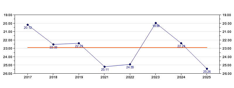 | Antall deltagelser | 8 (i perioden 2017 - 2025) |
