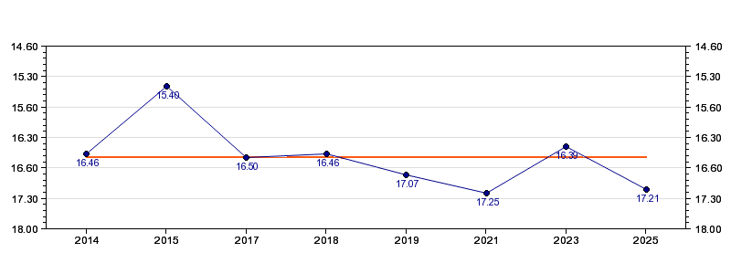 Antall deltagelser8 (i perioden 2014 - 2025)