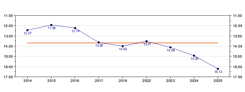 | Antall deltagelser | 9 (i perioden 2014 - 2025) |