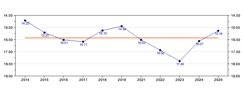 Antall deltagelser11 (i perioden 2014 - 2025)