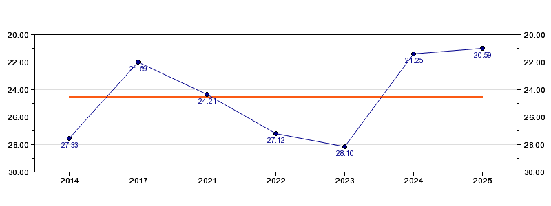 | Forrige tid | 20.59 (2025) |