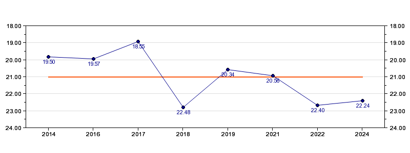 | Forrige tid | 22.24 (2024) |