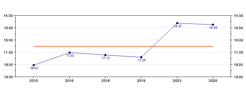 | Forrige tid | 14.45 (2025) |