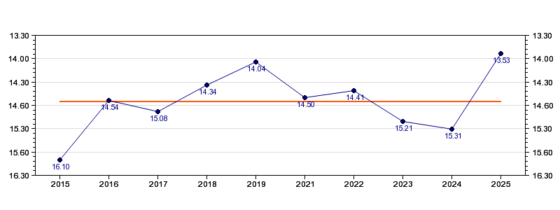 Antall deltagelser10 (i perioden 2015 - 2025)