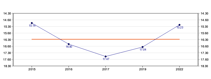 | Forrige tid | 15.23 (2022) |