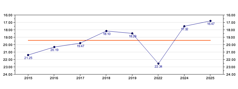 Antall deltagelser8 (i perioden 2015 - 2025)