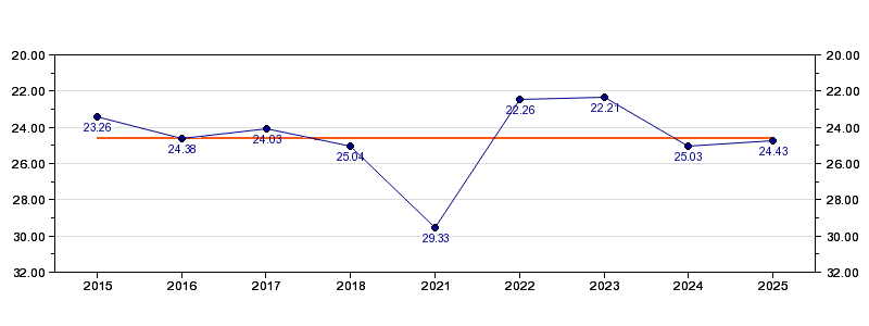 2024Kalkulator25:03 (721 m/h)04:03 (797 m/h, 110 %)11:29 (07:26, 740 m/h, 102 %)21:48 (10:19, 664 m/h, 92 %)25:03 (03:15, 768 m/h, 106 %)