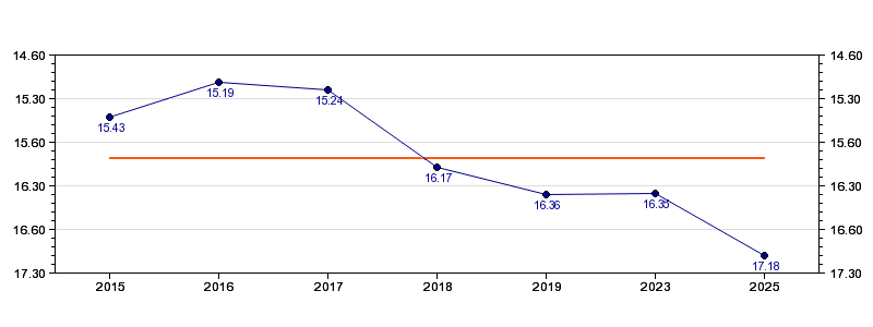 | Forrige tid | 17.18 (2025) |