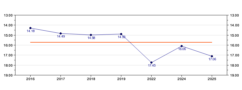 Antall deltagelser7 (i perioden 2016 - 2025)
