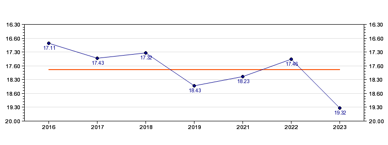 | Forrige tid | 19.32 (2023) |