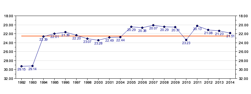| Antall deltagelser | 20 (i perioden 1992 - 2014) |