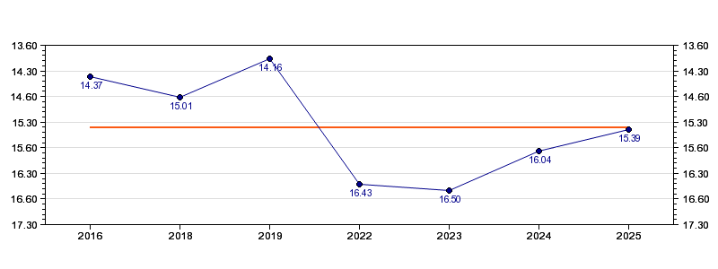 Antall deltagelser7 (i perioden 2016 - 2025)