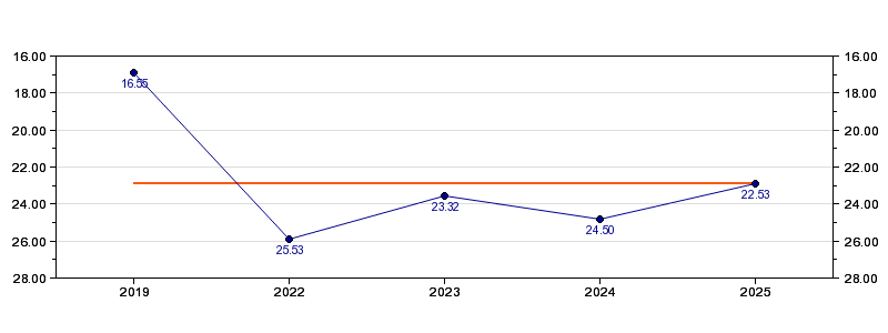| Antall deltagelser | 5 (i perioden 2019 - 2025) |
