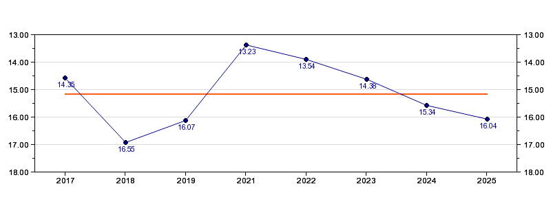 Antall deltagelser8 (i perioden 2017 - 2025)