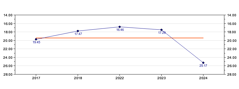| Forrige tid | 25.17 (2024) |