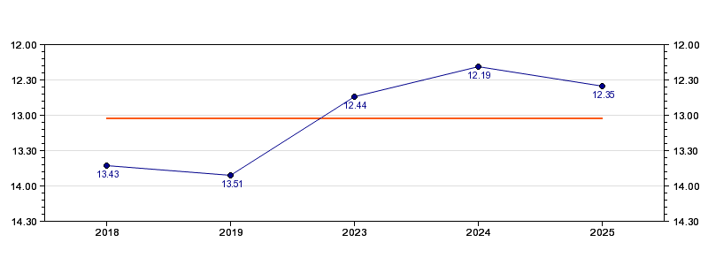 | Forrige tid | 12.35 (2025) |