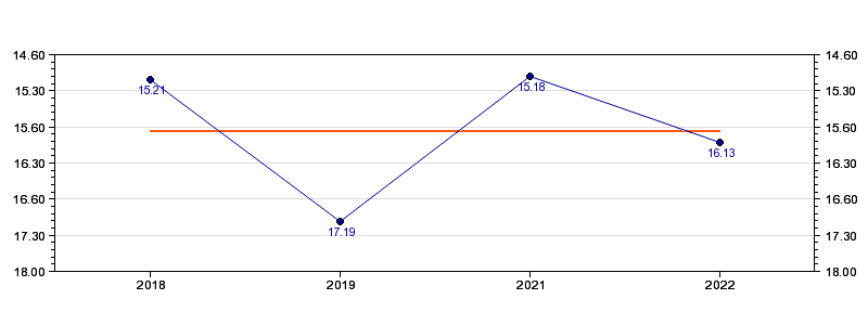 | Forrige tid | 16.13 (2022) |