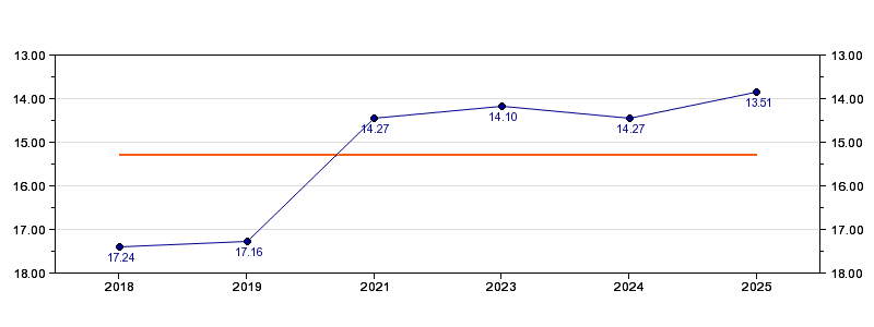 | Forrige tid | 13.51 (2025) |