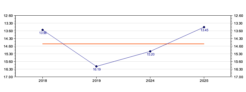 | Forrige tid | 13.45 (2025) |