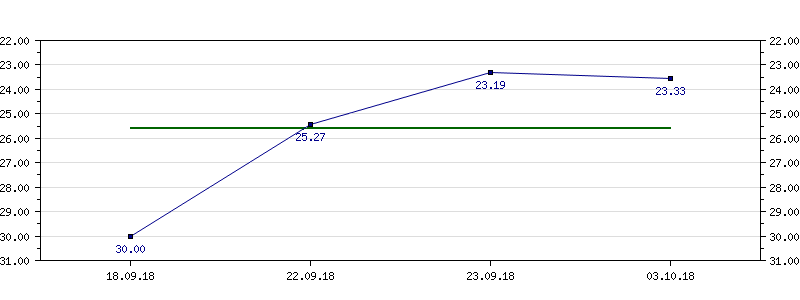 | 18.09.2018 | 30.00 | 22.09.2018 | 25.27 | 23.09.2018 | 23.19 | 03.10.2018 | 23.33 |