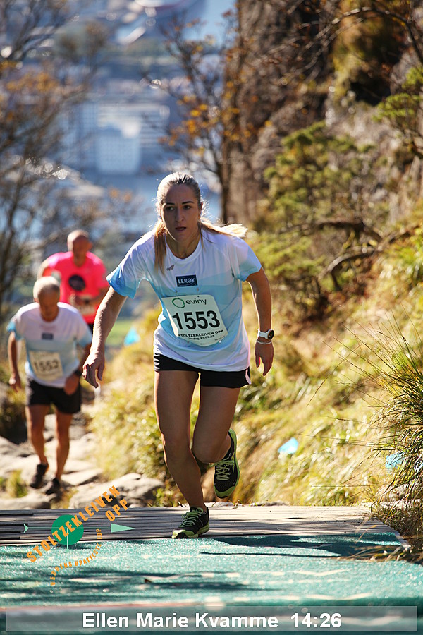Da Thorbjørn Ludvigsen satte rekord på 7.54 i 2016 hadde han serien 95-99-95-115 og en gjennomsnittlig vertikal hastighet på 2286 meter/time. Kristin Størmer Steira hadde serien 107-96-95-107 da hun satte damerekord på 9:35 i 2013 med en gjennomsnittlig vertikal hastighet på 1884 meter/time. Til sammenligning hadde verdensrekordløpene på en vertikal kilometer (per 1/8/2014) hastighet på henholdsvis 1967 meter/time og 1630 meter/time - men da ble det altså løpt mer enn 3 ganger så langt.