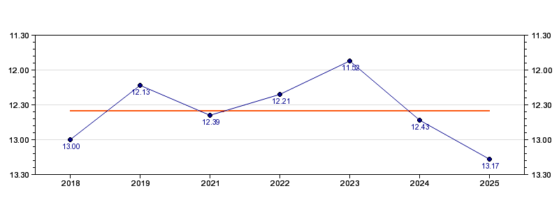 Antall deltagelser7 (i perioden 2018 - 2025)
