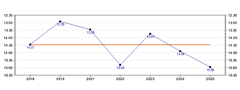 Antall deltagelser7 (i perioden 2018 - 2025)