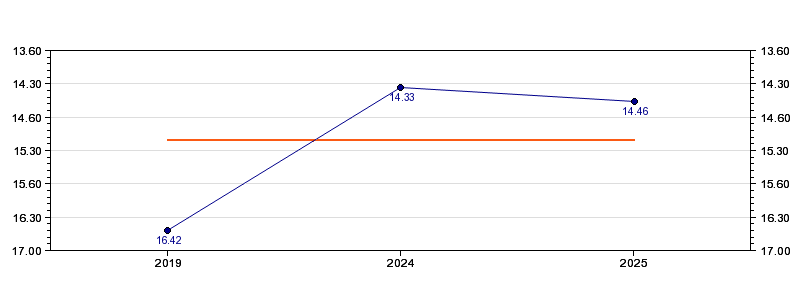 | Forrige tid | 14.46 (2025) |