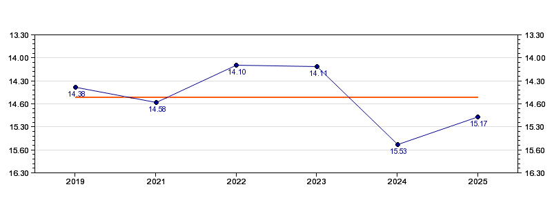 2022Kalkulator14:10 (1276 m/h)02:18 (1403 m/h, 109 %)06:43 (04:25, 1245 m/h, 97 %)12:27 (05:44, 1196 m/h, 93 %)14:10 (01:43, 1453 m/h, 113 %)