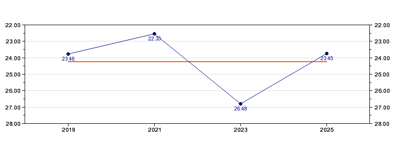 | Forrige tid | 23.45 (2025) |