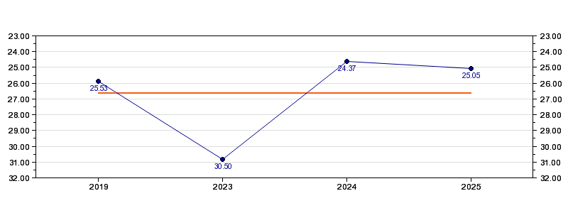 | Antall deltagelser | 4 (i perioden 2019 - 2025) |