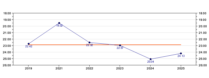| Antall deltagelser | 6 (i perioden 2019 - 2025) |
