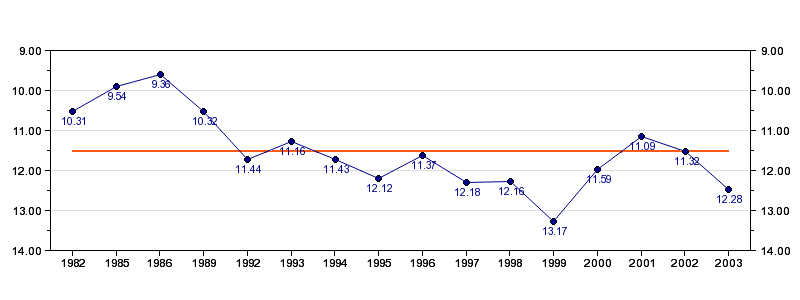 Antall deltagelser16 (i perioden 1982 - 2003)