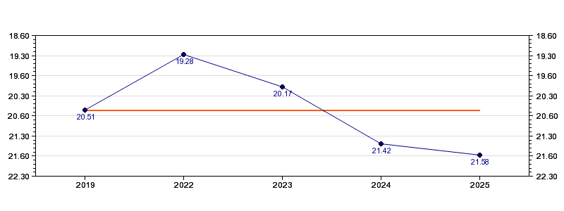 | Forrige tid | 21.58 (2025) |