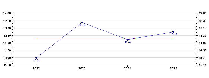 | Forrige tid | 13.16 (2025) |