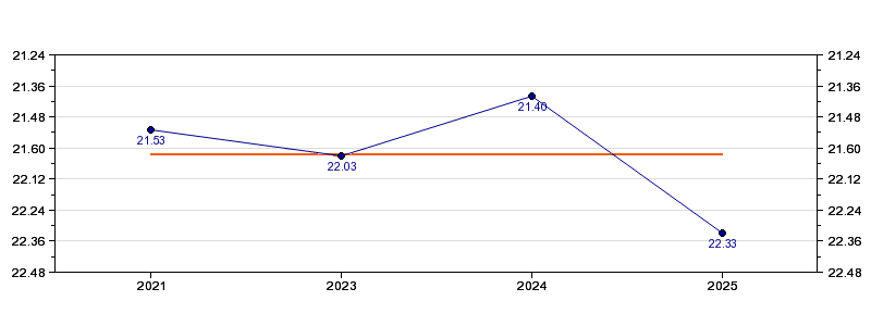 | Forrige tid | 22.33 (2025) |