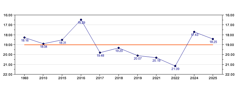 Antall deltagelser11 (i perioden 1993 - 2025)