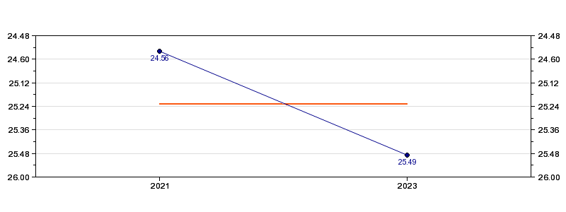 | Forrige tid | 25.49 (2023) |