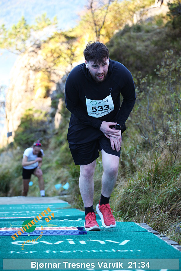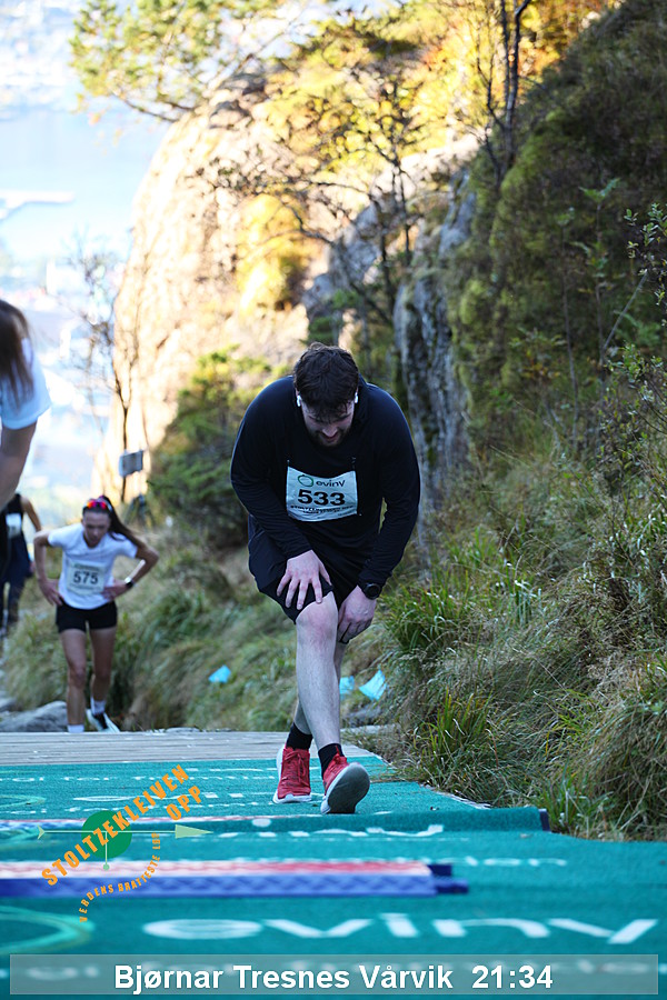 Da Thorbjørn Ludvigsen satte rekord på 7.54 i 2016 hadde han serien 95-99-95-115 og en gjennomsnittlig vertikal hastighet på 2286 meter/time. Kristin Størmer Steira hadde serien 107-96-95-107 da hun satte damerekord på 9:35 i 2013 med en gjennomsnittlig vertikal hastighet på 1884 meter/time. Til sammenligning hadde verdensrekordløpene på en vertikal kilometer (per 1/8/2014) hastighet på henholdsvis 1967 meter/time og 1630 meter/time - men da ble det altså løpt mer enn 3 ganger så langt.