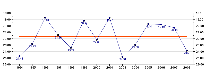 | Antall deltagelser | 14 (i perioden 1994 - 2009) |