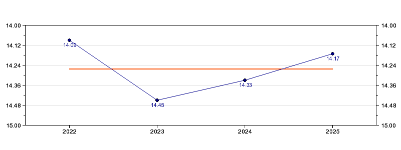 | Forrige tid | 14.17 (2025) |