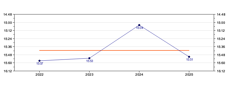 | Forrige tid | 15.51 (2025) |