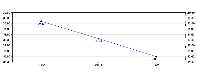 | Forrige tid | 34.01 (2025) |