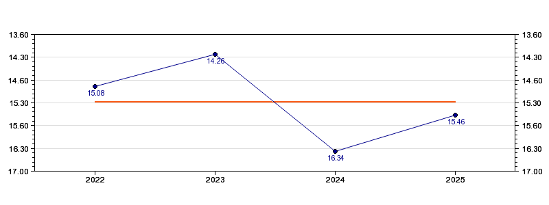 | Forrige tid | 15.46 (2025) |