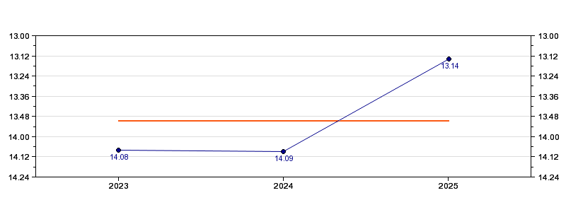 | Forrige tid | 13.14 (2025) |