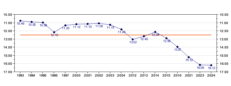 Antall deltagelser18 (i perioden 1993 - 2024)