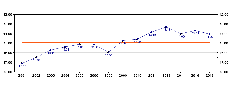 Antall deltagelser14 (i perioden 2001 - 2017)