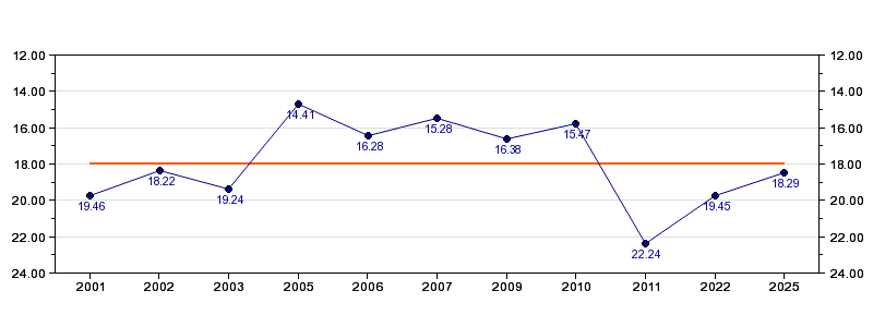 Antall deltagelser11 (i perioden 2001 - 2025)