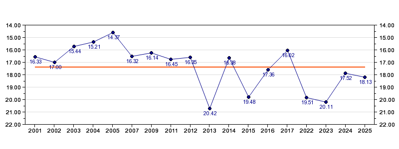 | 2025 | Kalkulator | 18:13 (992 m/h) | 03:30 (922 m/h, 92 %) | 09:00 (05:30, 1000 m/h, 100 %) | 15:55 (06:55, 991 m/h, 99 %) | 18:13 (02:18, 1085 m/h, 109 %) |