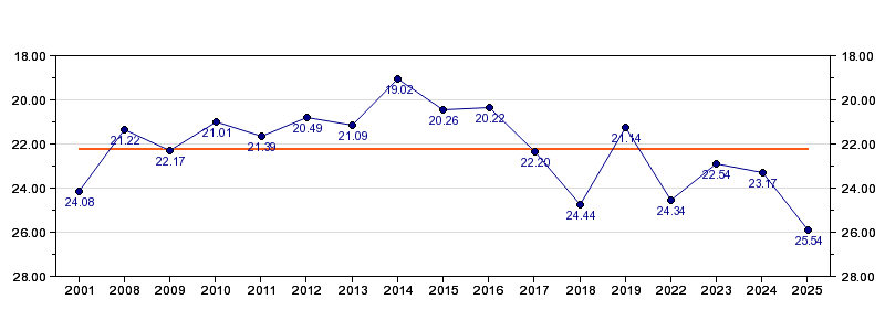 | 2025 | Kalkulator | 25:54 (698 m/h) | 04:17 (753 m/h, 107 %) | 12:06 (07:49, 703 m/h, 100 %) | 22:20 (10:14, 670 m/h, 95 %) | 25:54 (03:34, 699 m/h, 100 %) |